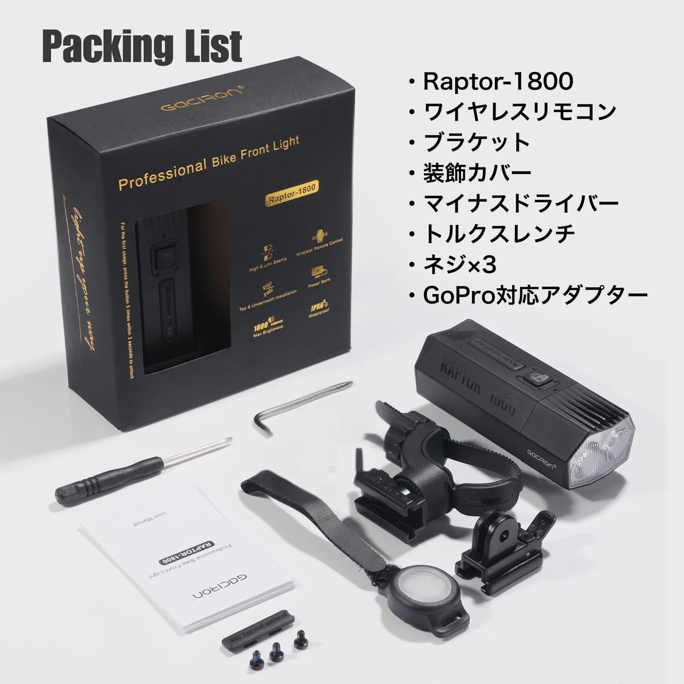 Gaciron(ガシロン)Raptor-1800は、最大1800ルーメンの明るさで夜道をしっかり照らす、高性能な自転車用フロントライトです。ハイビーム/ロービームの切り替えが可能な光学設計で、走行シーンに応じて最適な照射を実現。付属のワイヤレスリモコンにより、ハンドルから手を離さずにモード変更や明るさ調整が可能です。