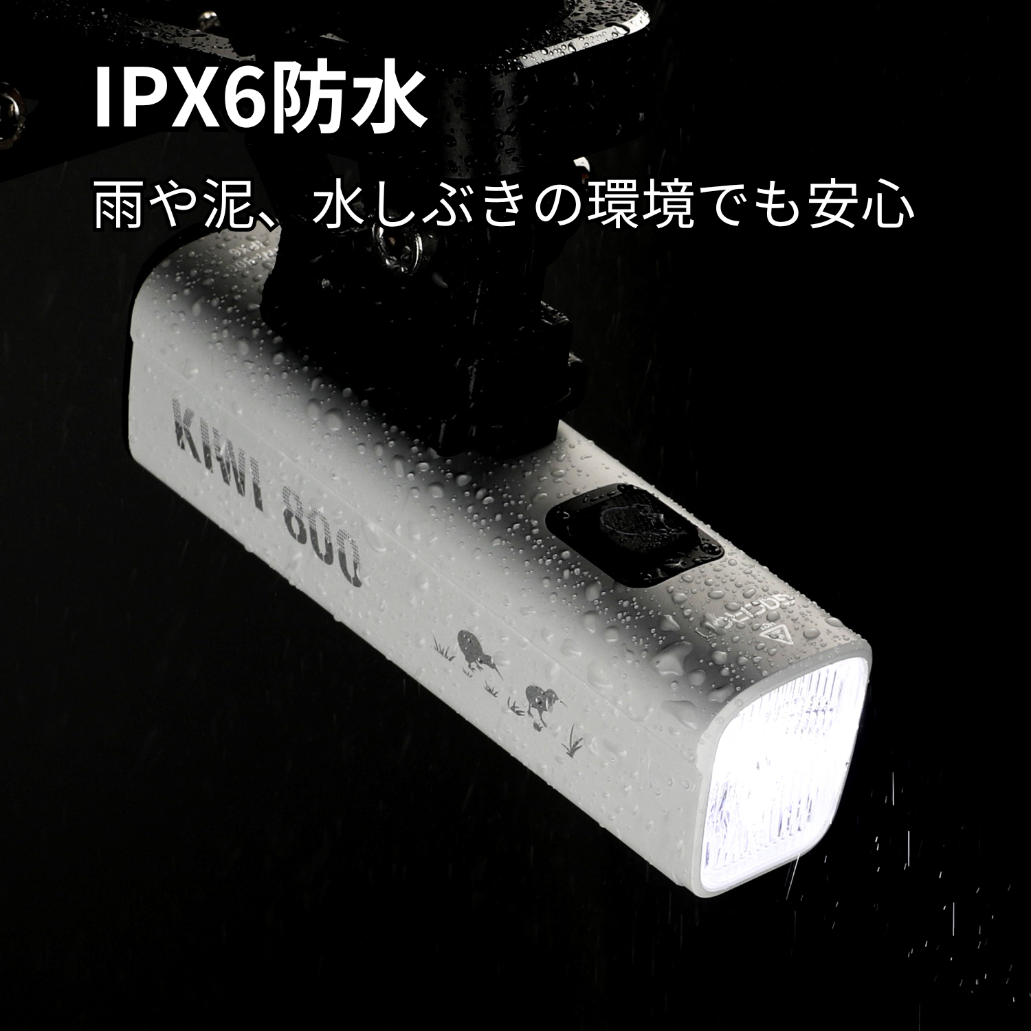 ・高輝度800ルーメン自転車用ライト:カットオフビーム技術を採用し、対向車や歩行者へのまぶしさを抑えつつ、前方の路面を広く明るく照らします。