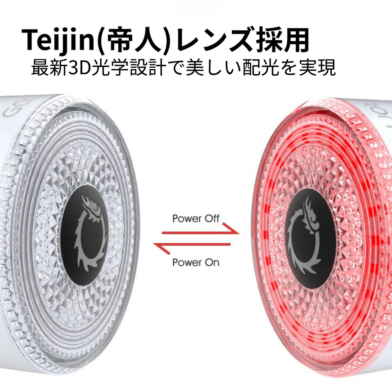 また、高性能光学レンズによって、美しいビームパターンと優れた視認性を実現。安全性とデザイン性を兼ね備えたリアライトです。