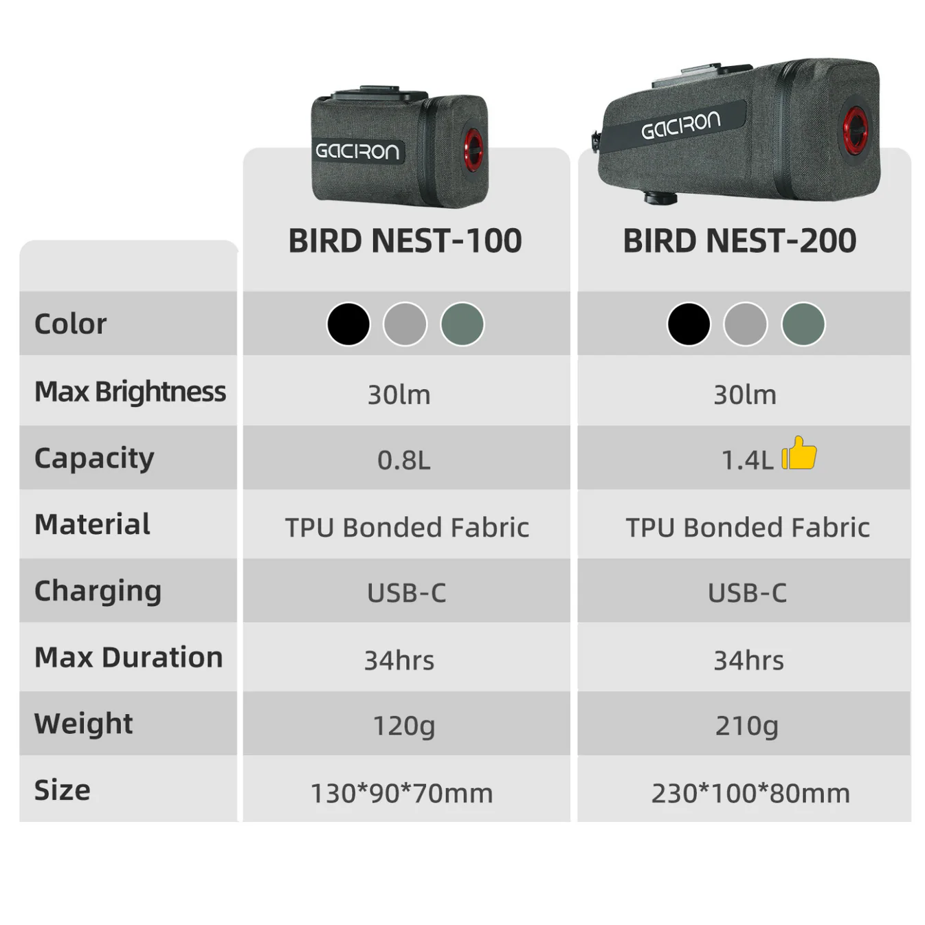 Gaciron(ガシロン)の「BIRD NEST-100」は、リアライトと一体化したコンパクト設計のサドルバッグです。