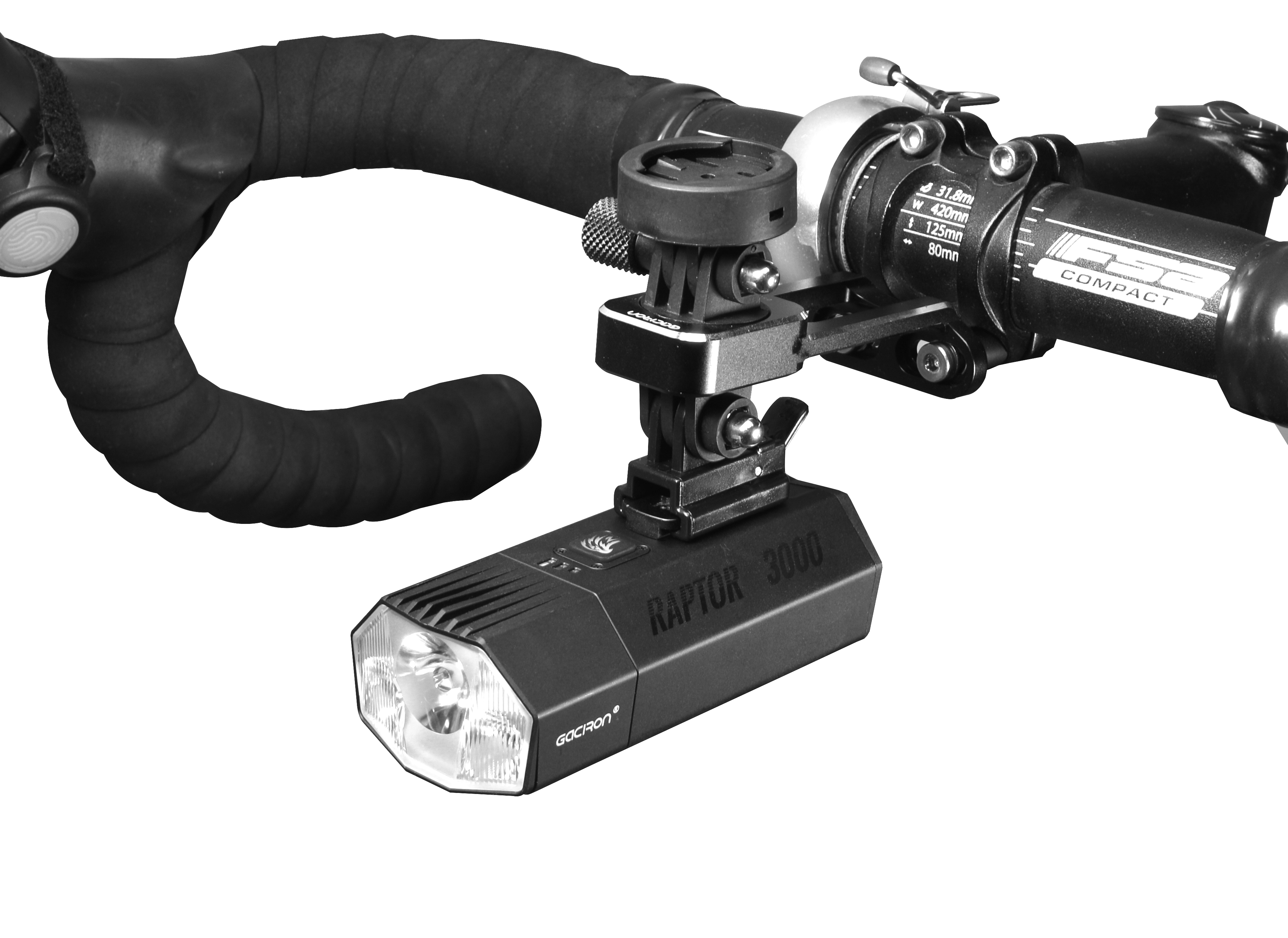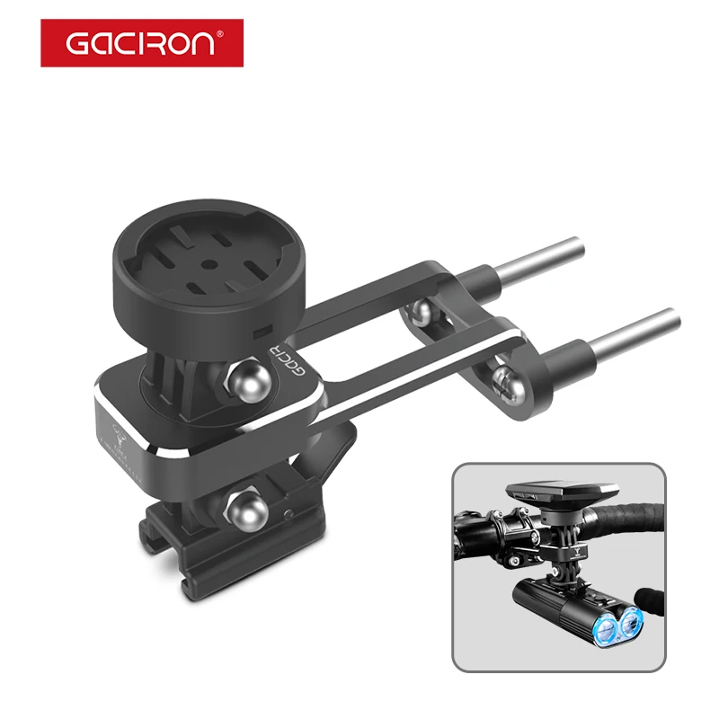 GoPro規格のマウントを上下に装備しており、Gaciron専用ライトベース、Garmin、Brytonなどのサイクルコンピューターの取り付けが可能です。