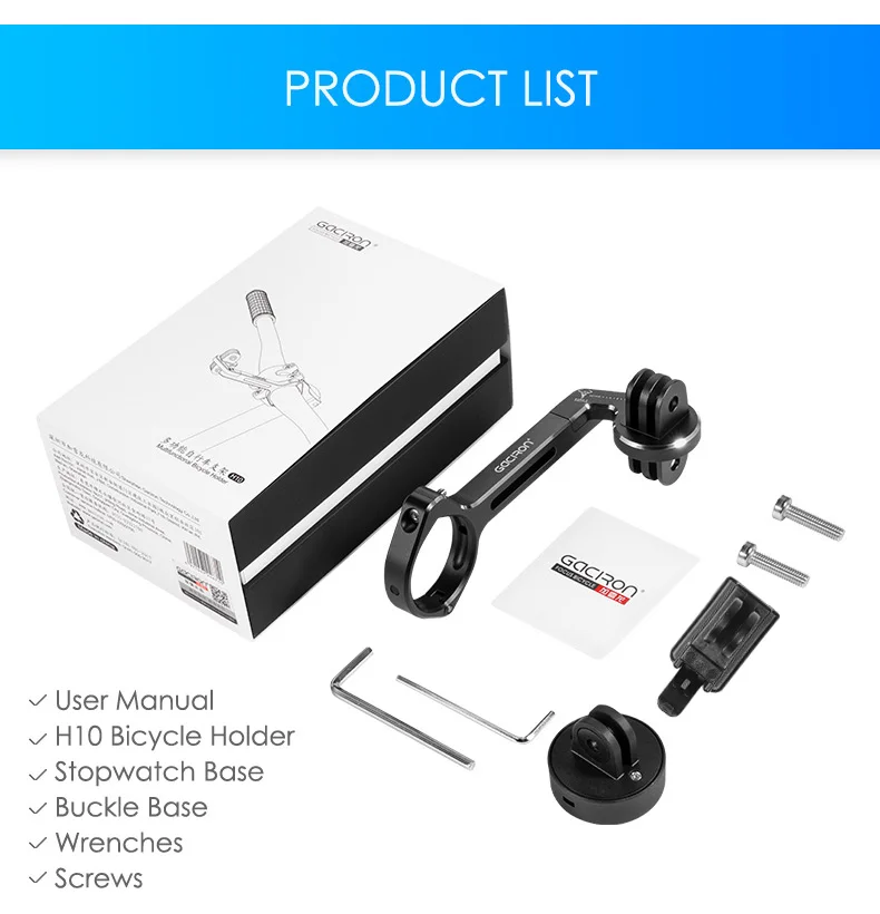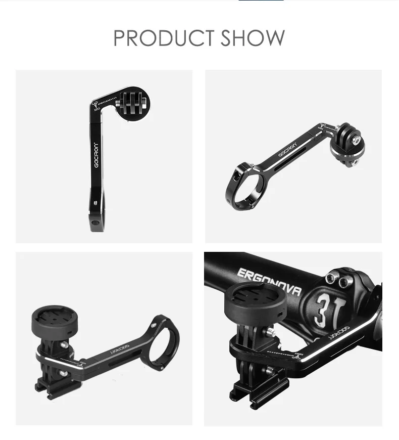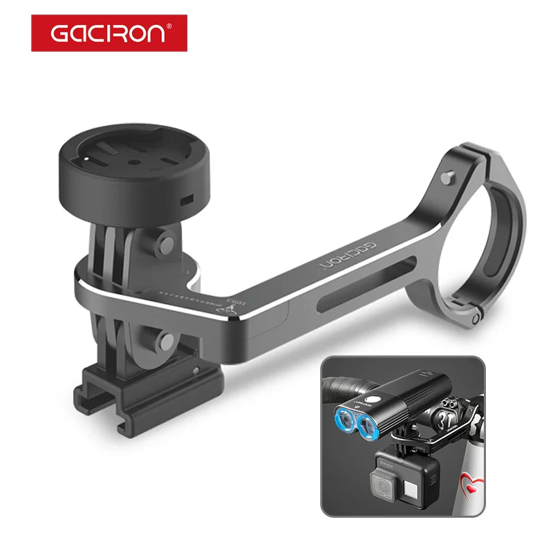 GoProなどのアクションカメラやGarminなどのサイクルコンピューター、Gacironライトの取り付けが可能な多機能ブラケットです。