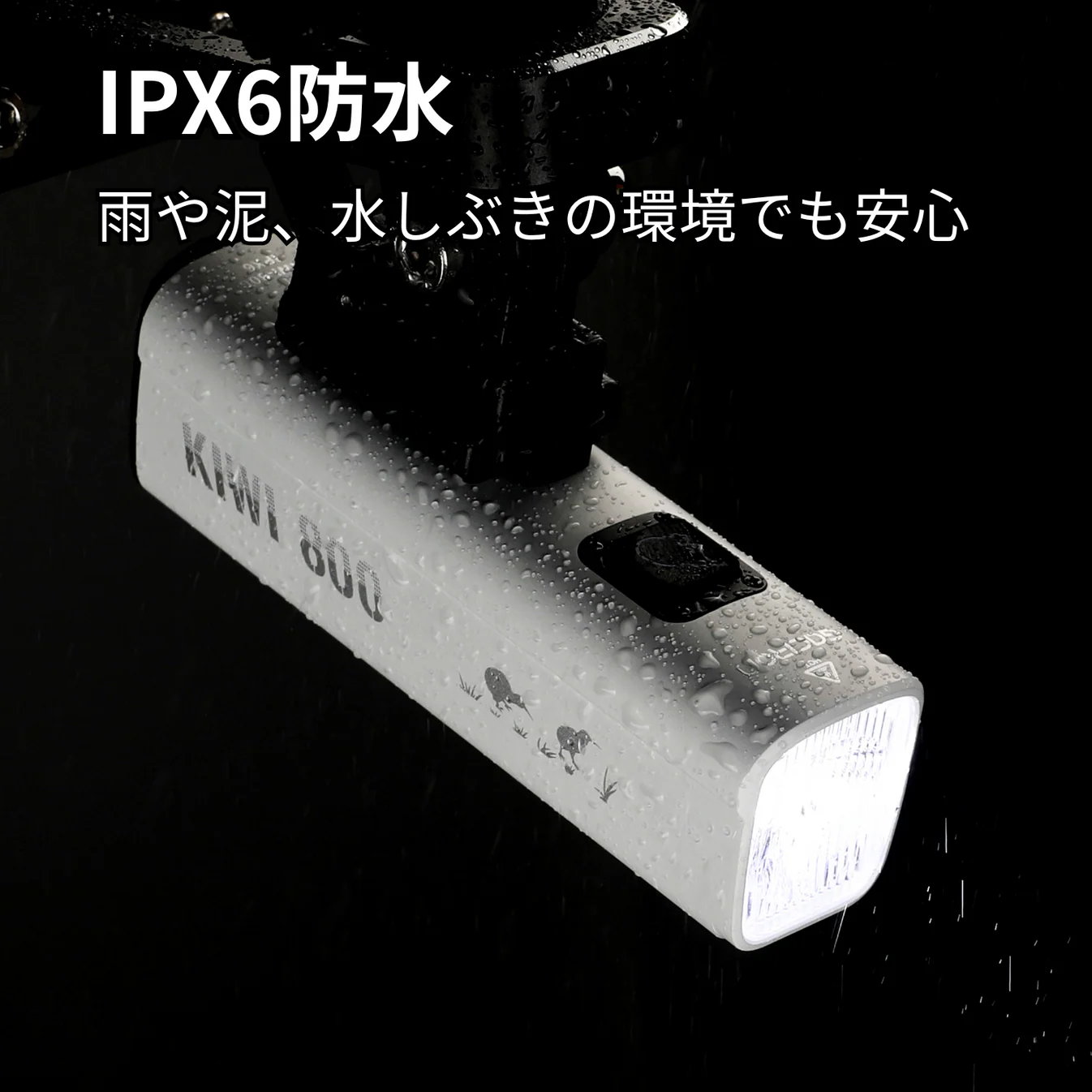 | サイズ | Gaciron KIWI-800は、最大800ルーメンの明るさとカットオフビーム設計により、夜道をしっかり照らしながら対向車や歩行者へのまぶしさを軽減する自転車用フロントライトです。 高耐久なCNC加工アルミハウジングを採用し、USB-C充電やIPX6防水などの実用性も充実。付属マウントにより上下どちら向きにも取り付け可能で、ロードバイクからクロスバイク、通勤・通学まで幅広く対応します。 また、複数の照射モードを搭載しており、状況に応じて光量や点灯パターンを自在に調整できます。 【KIWI-800の特徴】 ・高輝度800ルーメン自転車用ライト:カットオフビーム技術を採用し、対向車や歩行者へのまぶしさを抑えつつ、前方の路面を広く明るく照らします。 ・CNC加工ハウジング: 耐久性とスタイルを兼ね備えたコンパクトなデザイン。 ・多機能マウント:ハンドルバーの上部または下部に取り付け可能で、オプションの多機能マウントも使用できます。 ・USB-C充電: USB充電式で外出先でも充電可能、繰り返し使うことができます。電池式と違い交換の手間もなく、ランニングコストもかかりません。 ・バッテリーインジケーター: バッテリー残量を色で表示(青: 61%-100%、黄: 21%-60%、赤: 1%-20%)。 ・IPX6防水:雨や水しぶきがある環境でも性能を維持します。 ・5種類の動作モード:状況に応じて照明モードが選択可能です。 【スペック】 モデル:KIWI-800 カラー:ブラック・ホワイト 光源:LED 最大光束:800lm 電池容量:2500mAh インプット:5V/2.0A 充電時間目安:約1.5時間 カット オフライン:カットオフ ビーム 照射距離:>200m 防水性能:IPX6 本体サイズ:98.7x35x24.2mm 本体重量:約124g 【電源モード・使用時間】 高輝度モード:800lm 約2時間 中輝度モード:400lm 約3.5時間 低輝度モード:200lm 約6時間 ブレスモード(点滅):100-50lm 約15時間 昼間モード(点滅):400lm 約24時間 【パッケージ内容】 フロントライト ブラケット Gopro対応アダプター(他のブラケットに合わせて使用) 装飾カバー ネジ×3 トルクスレンチ マイナスドライバー ※仕様変更などにより写真や内容が一部変更となる場合がございます。 ※色は撮影条件・印刷などにより実際の色と異なる場合がございます。 ※商品は予告なく価格変更・販売を終了させていただく場合がございます。 |