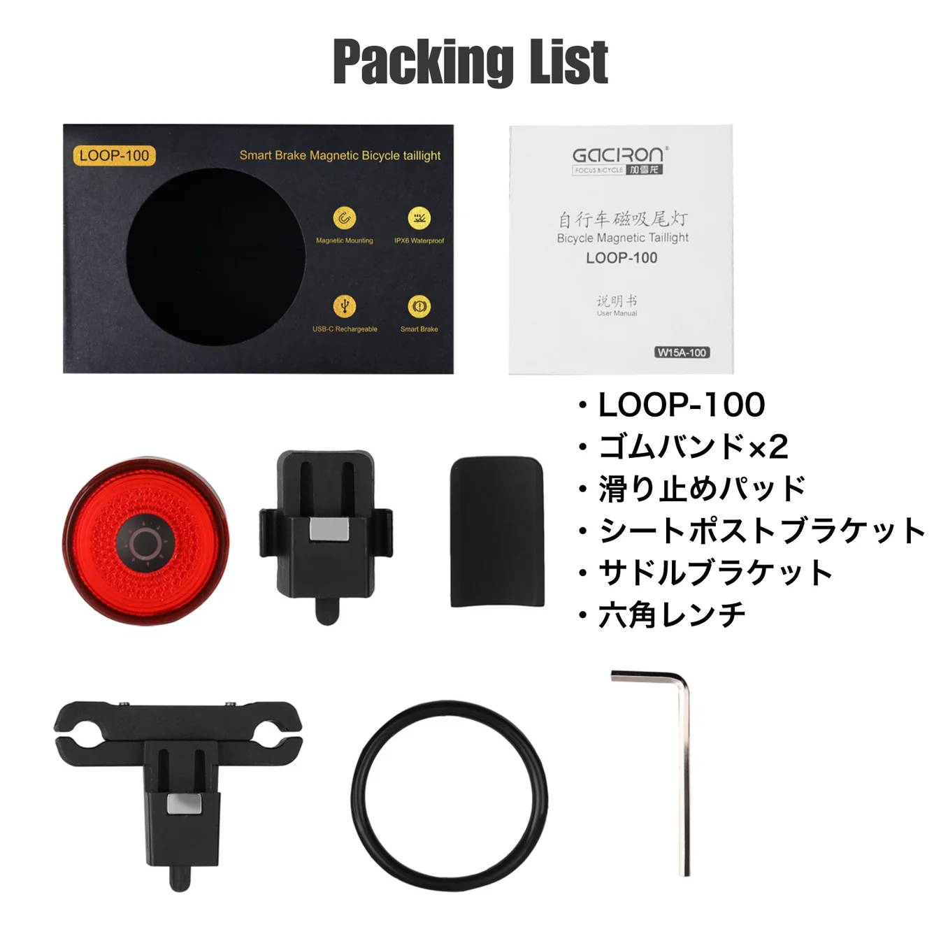 Gaciron LOOP-100は、スマートブレーキ機能とマグネット式マウントを搭載した高性能リアライト。コンパクトながら420mAhバッテリーを内蔵し、長時間の点灯が可能です。高精度なCNC加工のアルミハウジングは、耐久性とスタイリッシュなデザインを両立。どんな自転車にも自然になじみ、日常使いからロングライドまで幅広く対応します。